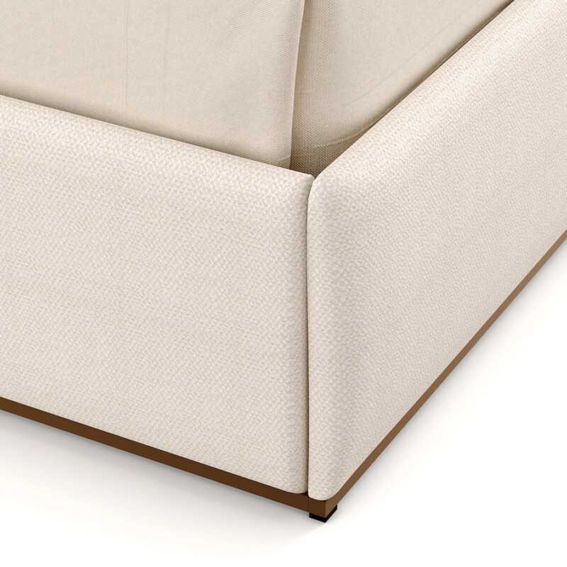 The Diana Upholstered Iron Bed by Wesley Allen is an elegant, modern classic designed with gentle curves and refined detailing. Its beautifully arched headboard and fully upholstered surround bring softness and sophistication to any bedroom, while a subtle metal accent at the base adds a clean, contemporary touch. Handcrafted by skilled iron artisans, the Diana offers both visual appeal and heirloom-level durability.