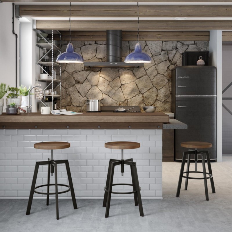 We love to mix different materials, and the Diaz swivel stool is a great example of it: Look at those solid wood (birch) legs paired with a metal footrest allowing for different combinations of colors and finishes! Its padded seat and backrest bring all the comfort that you need to enjoy time with your family around the kitchen island