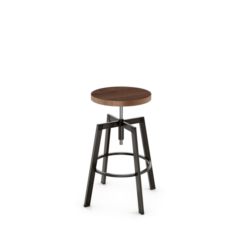This stool brings the ultimate industrial look to your home with distressed materials, clean lines, and a minimalist aesthetic. No frills here. Just a harmonious contrast created from clean metal details that play up the warmth of aged wood. You’ll love the base with its open-ended screw and riveted plates.