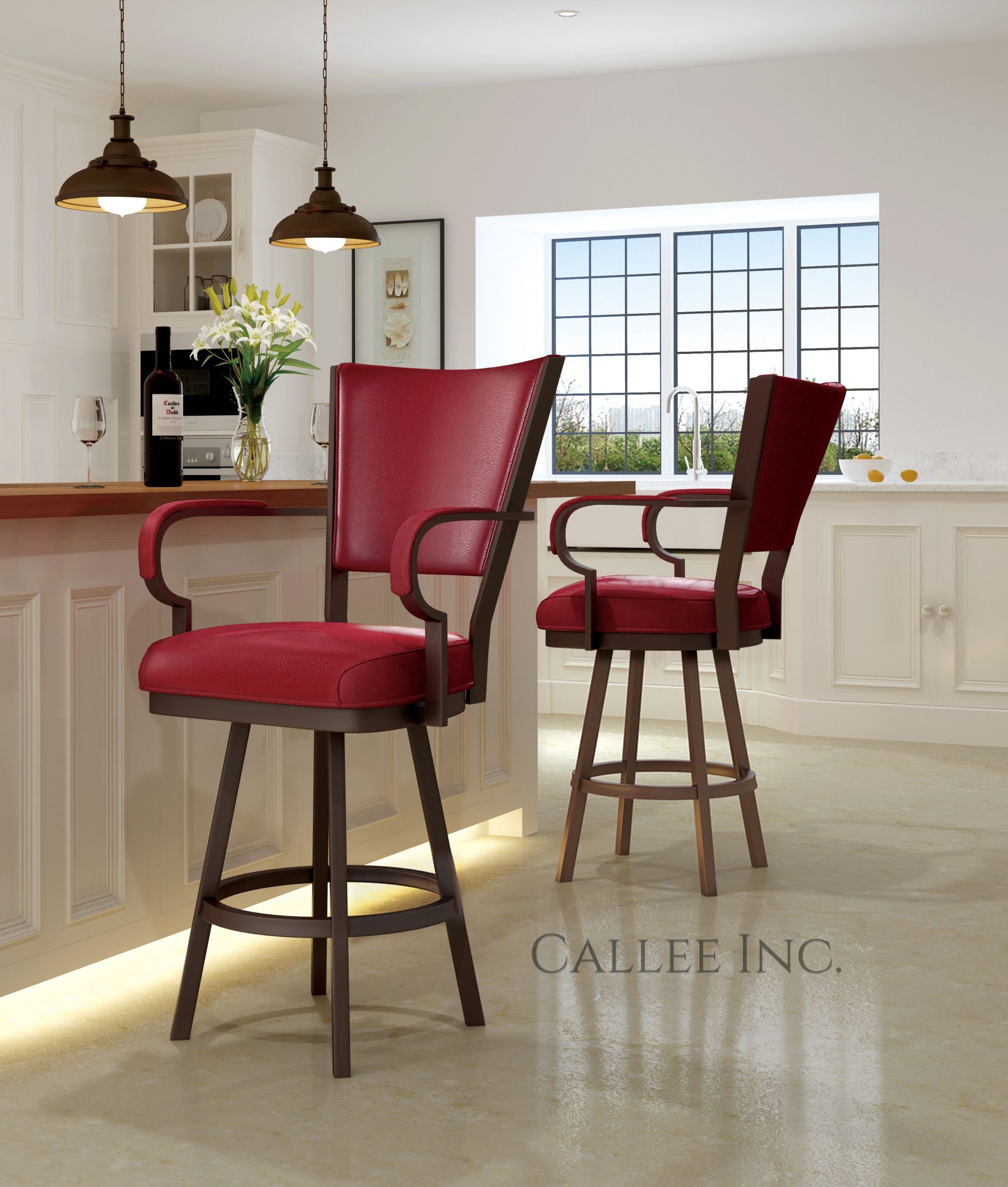 Callee Laguna Swivel Bar Stool comes with arms. Seat comes standard with welt. Standard Stool Sizing: 26 inch, 30 inch, and 34 inch Height.