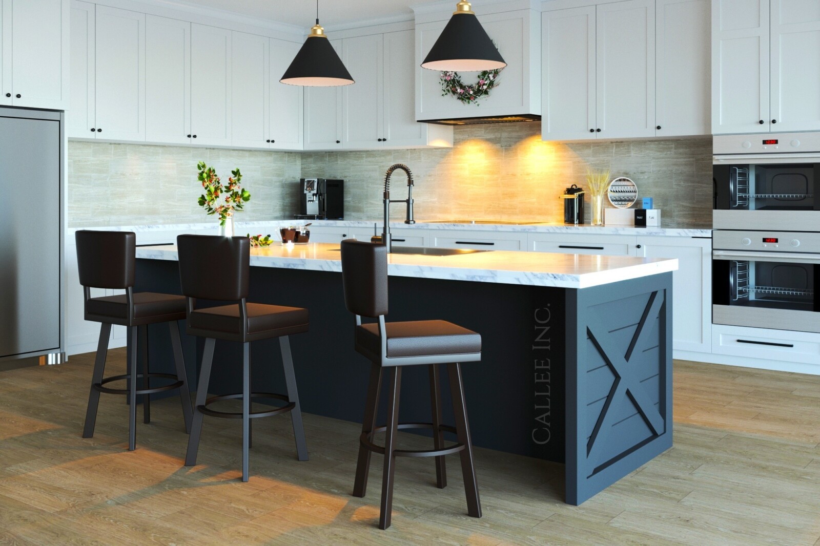 Callee Newport Malibu Swivel Stool has an elegant design and will look great in a wide variety of spaces. Seat comes standard with welt. Standard Stool Sizing: 26 inch and 30 inch Height.