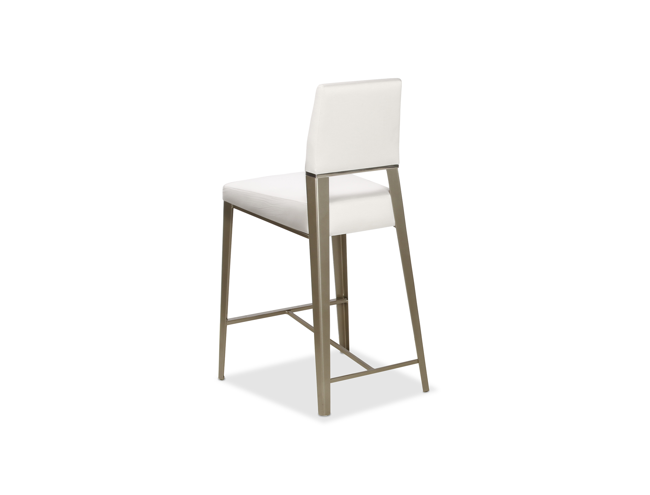 Vivian’s signature sparkle comes from a polished aluminum stripe linking the extra-tall upholstered back to the sturdy steel frame, adding subtle sophistication. The stools feature a fixed chrome footrest for added comfort, and are available in all Elite fabrics and leathers. The steel frame is offered in all Elite powder-coat finishes.