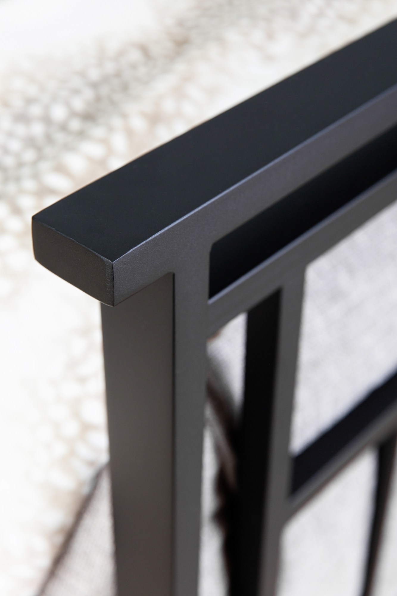 The Aspen Iron Bed stands out with its crisp, architectural design and balanced proportions. Its headboard and footboard showcase intersecting horizontal and vertical bars that form an open, geometric pattern, creating visual interest without overwhelming the space. Sleek side profile panels provide a polished look whether linens are tucked in or styled casually.