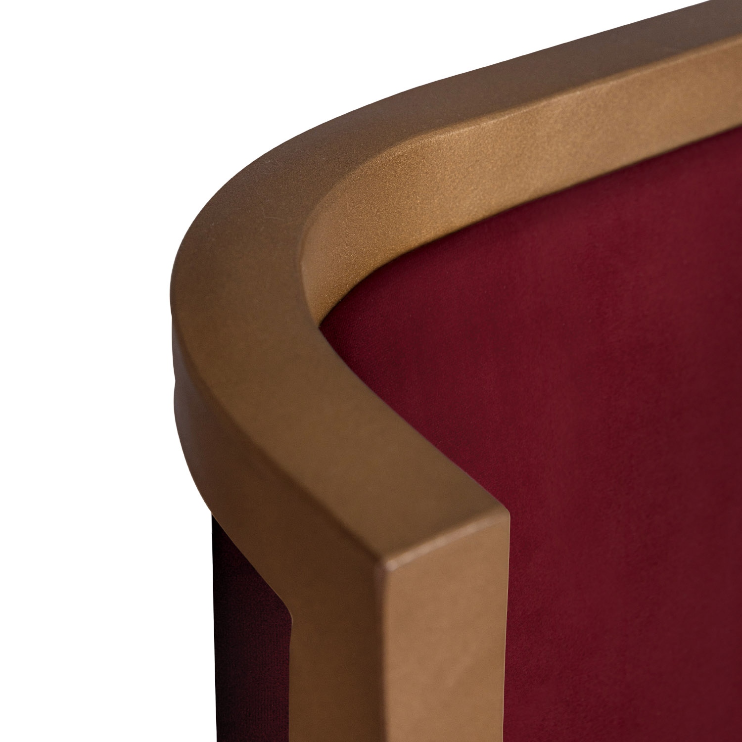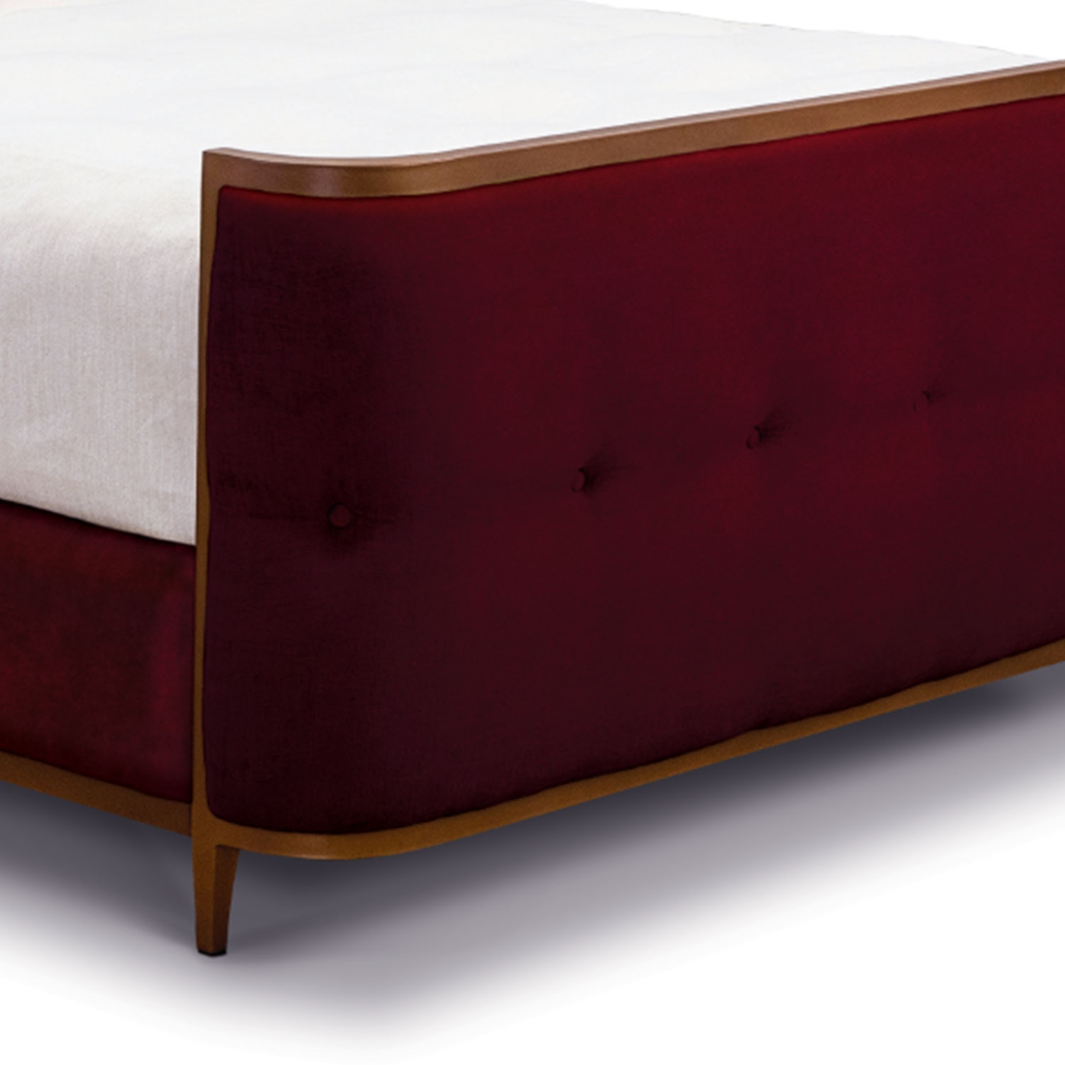 The Broadway Bed embodies modern sophistication through its sculpted curves and layered materials. Its button-tufted, upholstered panels are framed in hand-forged iron, creating a perfect balance of strength and softness. The gently curved corners on the headboard and footboard lend a graceful, inviting silhouette, while the upholstered side panels create a continuous, refined look that encloses the bed with warmth and elegance.