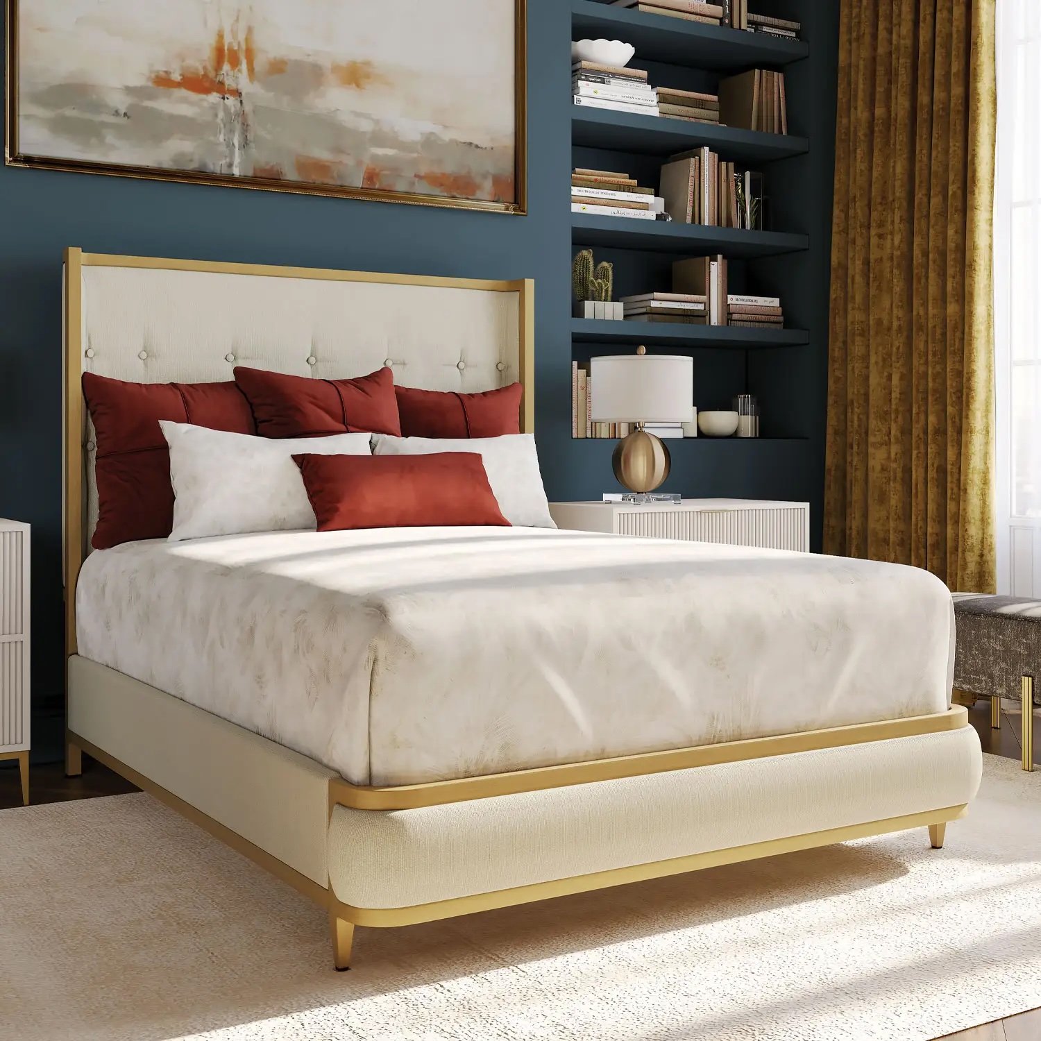 Designed for a lifetime of beauty and support, the Broadway Bed’s fully welded frame and solid steel construction deliver unmatched stability. Its refined silhouette and plush details make it a striking centerpiece that elevates any bedroom with ease.
