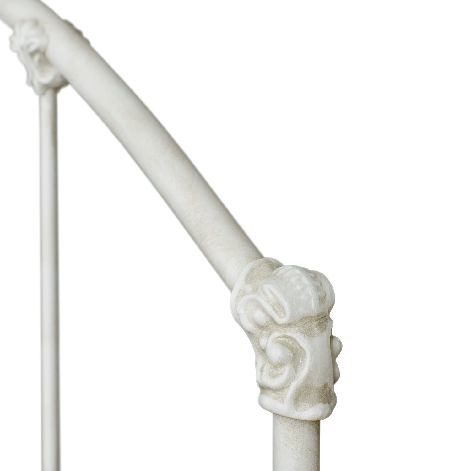 The deluxe Coventry Bed showcases gently arched headboard and footboard frames, creating a softly feminine silhouette with a refined French Country influence. Wide-spaced vertical rods keep the design light and airy, while hand-poured castings highlight each connection point for added detail and strength. The slim, contemporary side panels allow the bed to look finished even without a bed skirt or long comforter.