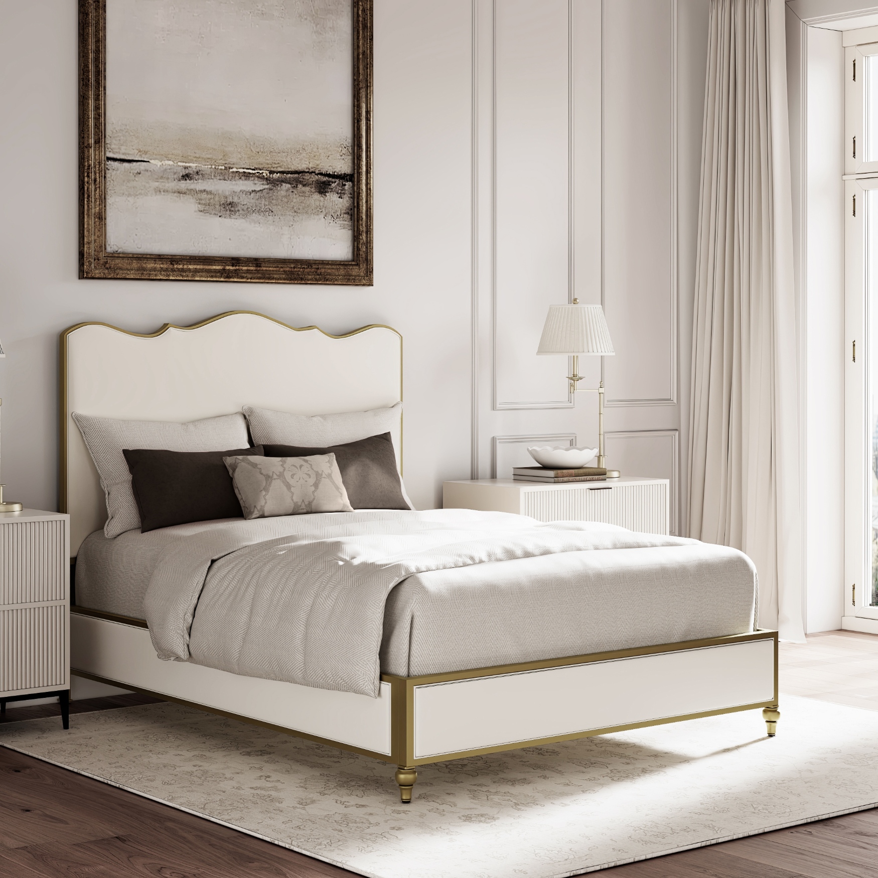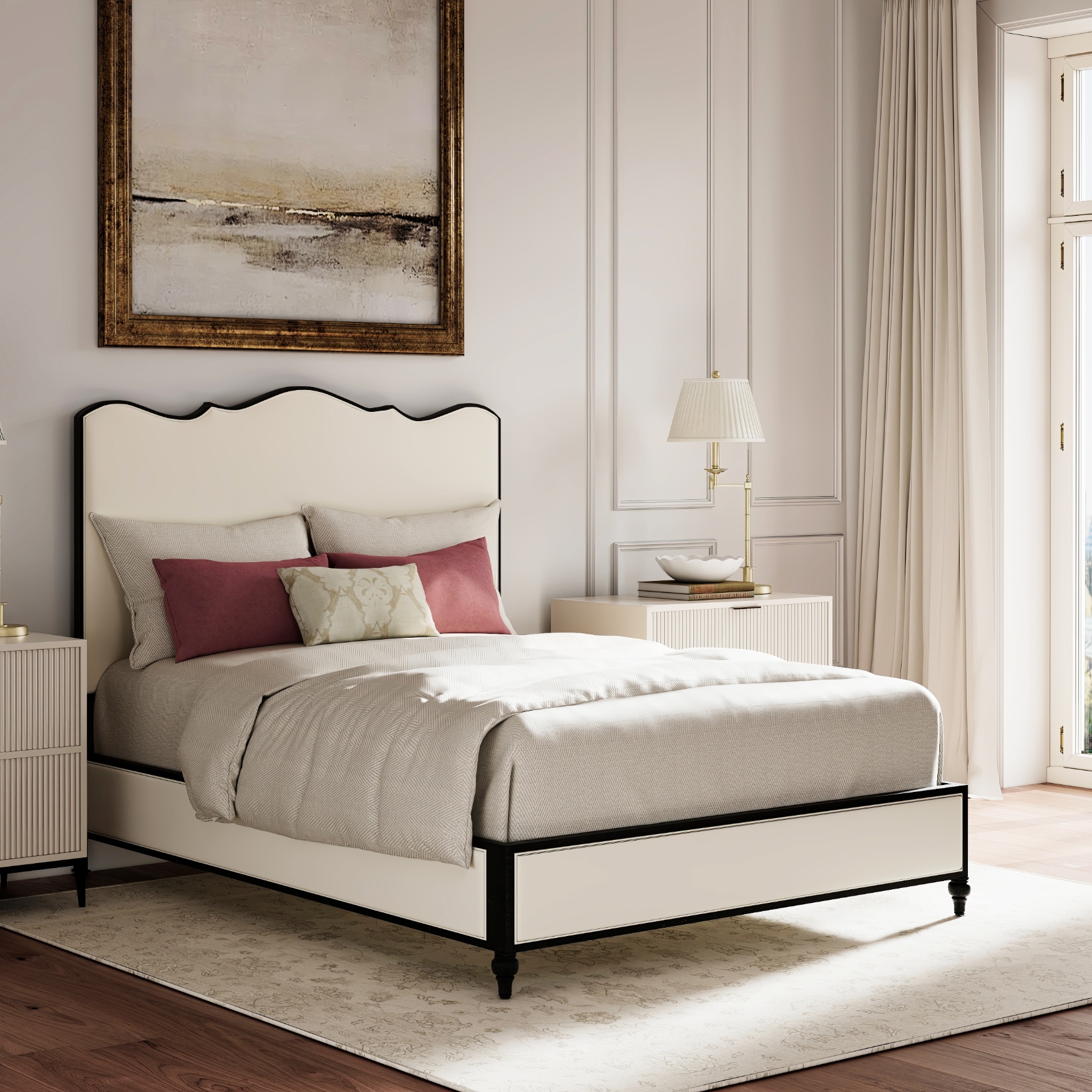 The Evans Bed embodies classic sophistication with a modern sensibility. Its gently curved headboard creates an elegant focal point, while upholstered panels outlined with welt trim offer texture, comfort, and visual depth. The upholstered surround and footboard complete the cohesive, designer look.