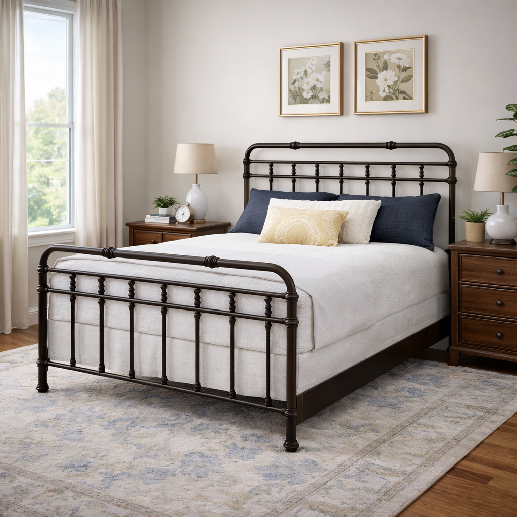 Perfect for use in a master bedroom, guest room, or vacation home, the Laredo Iron Bed serves as a stunning focal point while offering years of comfort, reliability, and style.
