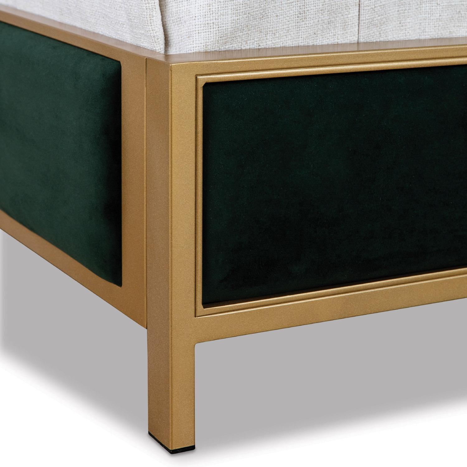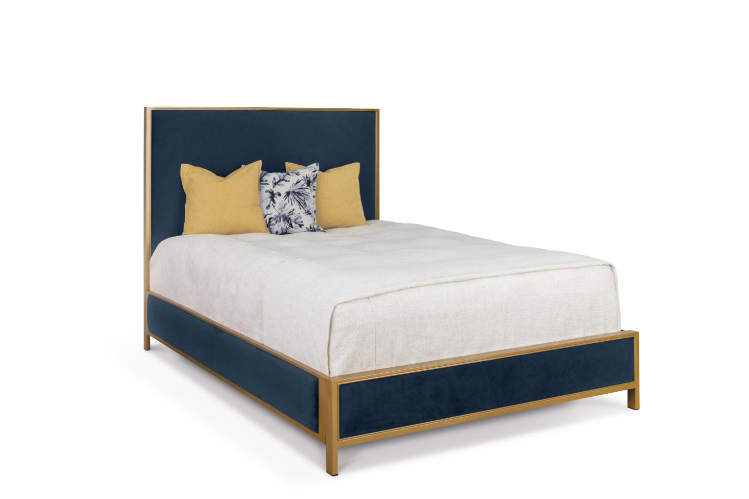 The Mason Bed is the perfect blend of simplicity and sophistication. Its fully upholstered headboard and surround offer a clean, refined profile that pairs effortlessly with both modern and transitional interiors. The iron frame provides unmatched strength and stability, while the upholstered panels add warmth, softness, and a touch of designer luxury.