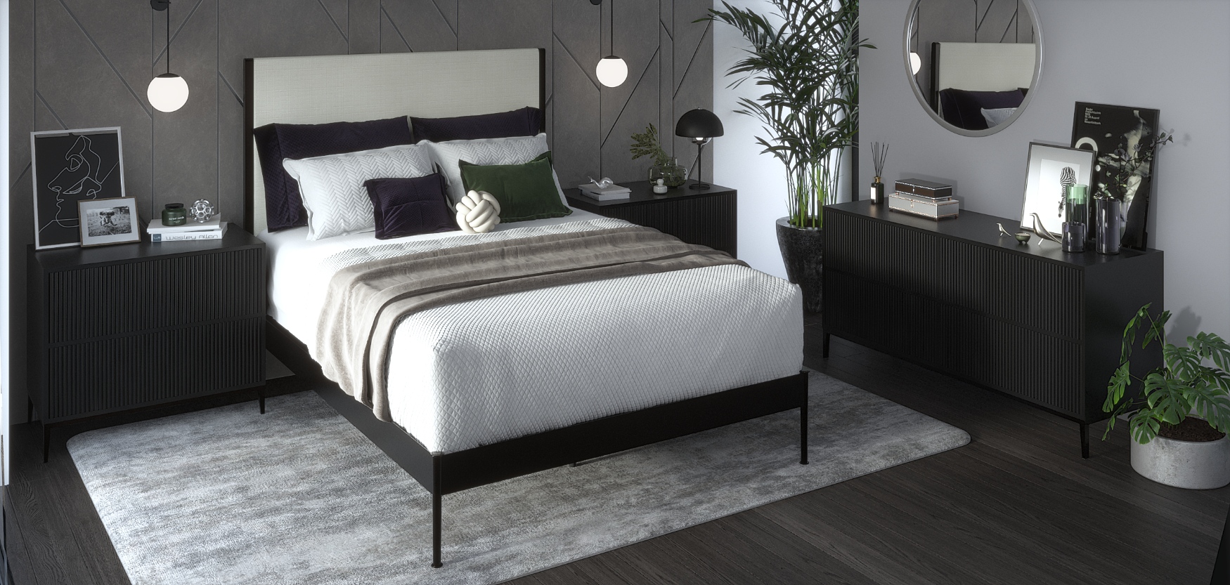 The Nile Bed stands out for its refined simplicity and contemporary elegance. Its clean lines, upholstered headboard, and low-profile metal surround create a modern aesthetic that fits beautifully in any interior. The platform design includes solid wood slats, providing exceptional mattress support without the need for a box spring or foundation.