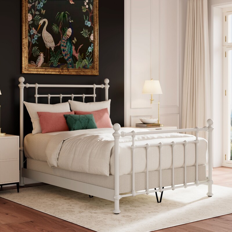 The Coventry Iron Bed by Wesley Allen captures the charm of French Country design with its graceful arches, wide-spaced vertical rods, and artisan-crafted castings. Built by hand with exceptional craftsmanship, the Coventry features a fully welded iron headboard and footboard, accompanied by sleek profile side panels that provide a polished, refined finish. With superior strength, timeless detailing, and over 30 customizable powder coat finishes, the Coventry is a striking centerpiece built to last for generations.