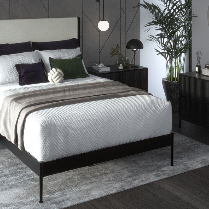 The Spencer Upholstered Iron Bed by Wesley Allen blends artisan craftsmanship with contemporary design, creating a statement piece that elevates any bedroom. With its graceful cut-out corners, vertically channeled upholstery, and handcrafted iron frame, the Spencer offers a refined, tailored look with exceptional durability. Every bed is made to order, ensuring a truly one-of-a-kind piece built to last for generations.