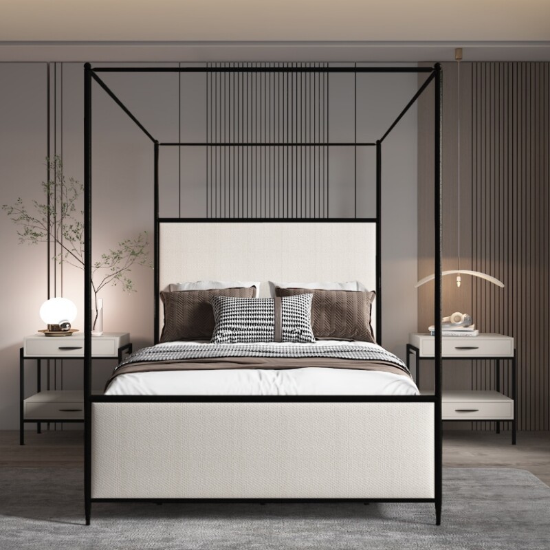The Kenton Upholstered Iron Canopy Bed brings a new level of sophistication and drama to your bedroom. Handcrafted from premium wrought iron and upholstered with your choice of designer fabrics or faux leathers, this canopy bed is an heirloom-quality centerpiece built for beauty and strength. Its refined silhouette, soft corners, and architectural canopy create a sense of modern luxury that elevates any interior design.