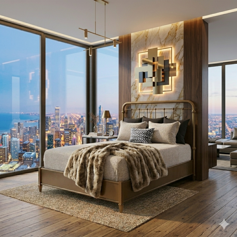 The Royce Hammered Iron Upholstered Canopy Bed by Wesley Allen makes a bold, luxurious statement with its handcrafted hammered finish, clean contemporary lines, and refined upholstered panels. Designed for modern interiors, the Royce combines structural strength with elegant softness—creating a canopy bed that becomes the centerpiece of any bedroom. Built with heirloom-quality materials and craftsmanship, it is made to be cherished for generations.