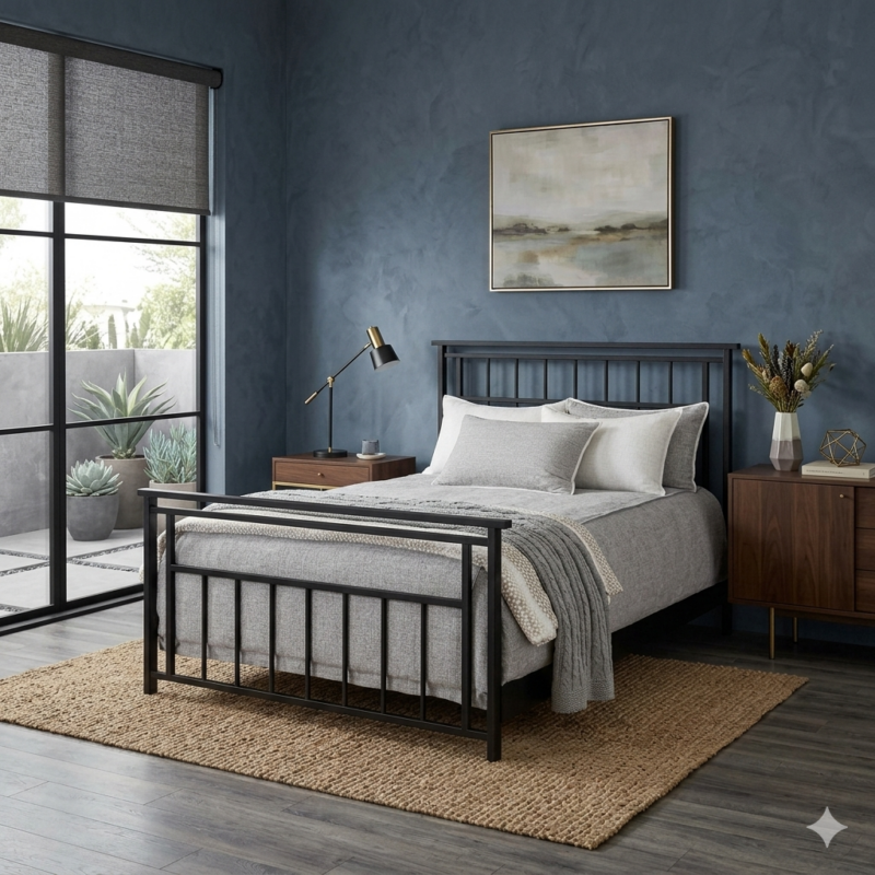The Latif Iron Bed by Wesley Allen blends clean lines with subtle decorative accents to create a timeless and sophisticated bedroom centerpiece. Featuring a gently contoured shelter-style footboard, balanced spindles, and elegant medallion details, the Latif delivers refined luxury with artisan-built strength. Handcrafted from wrought iron and finished with premium powder coating, this bed is designed to offer both enduring beauty and exceptional durability.