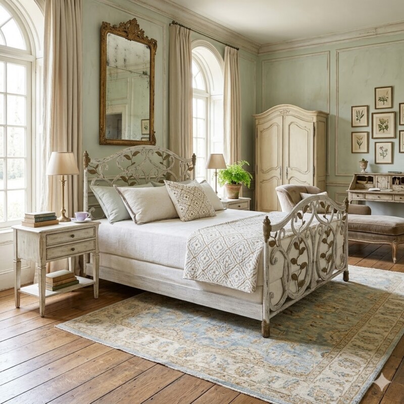 The Evans Upholstered Iron Bed by Wesley Allen combines graceful curves with the enduring strength of handcrafted iron. With its beautifully shaped headboard, soft upholstered panels, and refined surround frame, the Evans is a study in elegance and comfort. Every detail, from the sculpted top line of the headboard to the carefully applied welt trim, speaks to Wesley Allen’s commitment to exceptional craftsmanship and timeless beauty.